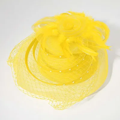 Mesh Flower Feather Pointed Fascinator / Dressy Hat In Yellow