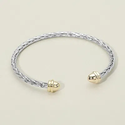 14k Gold Plated Two Tone Braided Cuff Bracelet In Metallic