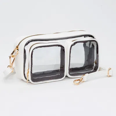 Dual Front Pocket Faux Leather Transparent Crossbody Bag In Gray