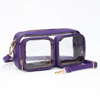 Dual Front Pocket Faux Leather Transparent Crossbody Bag In Purple