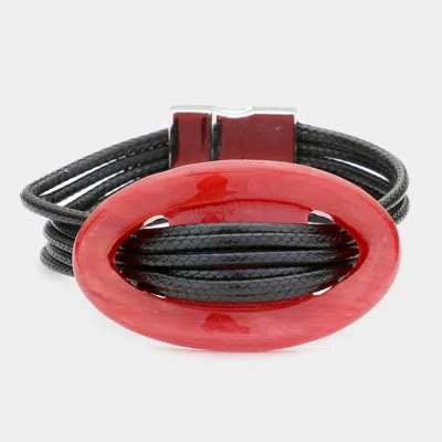 Celluloid Hoop Accented Multi-tier Cord Bracelet Burgundy In Red