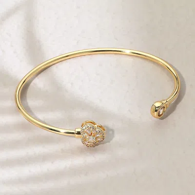 Gold Plated Cz Stone Clover Tip Cuff Bracelet Gold