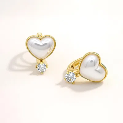 14k Gold Dipped Cz Accent Pearl Heart Huggie Hoop Earrings In Multi