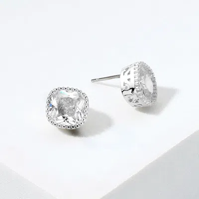 14k Gold Plated Square Cz Stone Stud Earrings In Silver