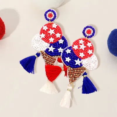 Fabric Back American Usa Flag Seed Beaded Ice Cream Triple Tassel Link Dangle Earrings In Multi