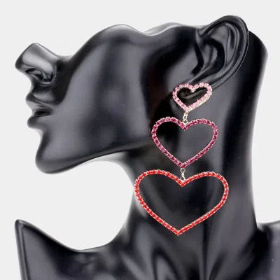 Rhinestone Triple Open Heart Link Dangle Earrings In Multi