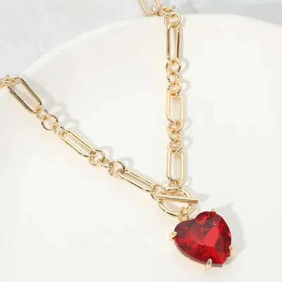 Chunky Heart Stone Cluster Toggle Pendant Necklace In Gold