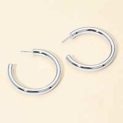 White Gold Dipped Chunky Open Hoop Earrings - Silver