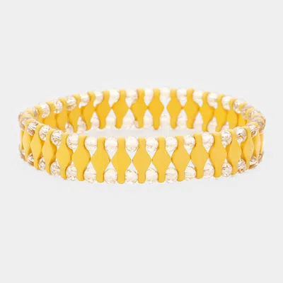 3pcs - Pearl Faceted Beaded Stretch Bracelets In Yellow