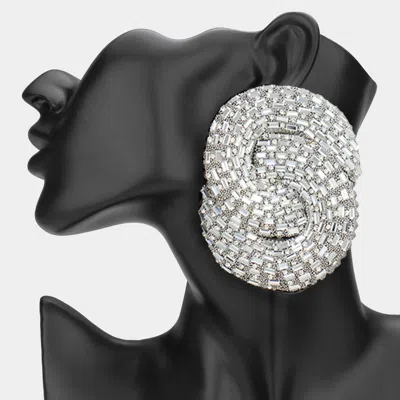 Oversized Rhinestone Pave Evening Earrings In Silver