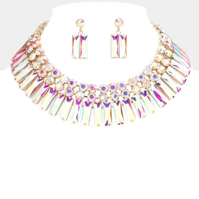 Round Rectangle Stone Cluster Evening Necklace In Multi