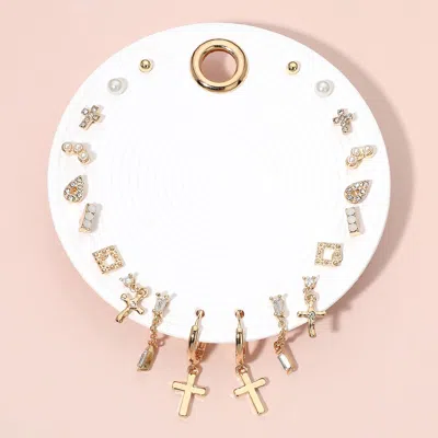 10pairs - Cross Charm Crystal Mixed Stud And Hoop Earring Set In Multi