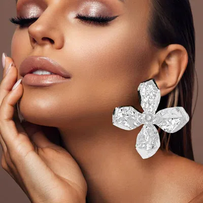 Oversized Stone Pointed Hammered Metal Flower Earrings In Multi