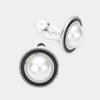 Pearl Accented Clip On Earrings In Silver