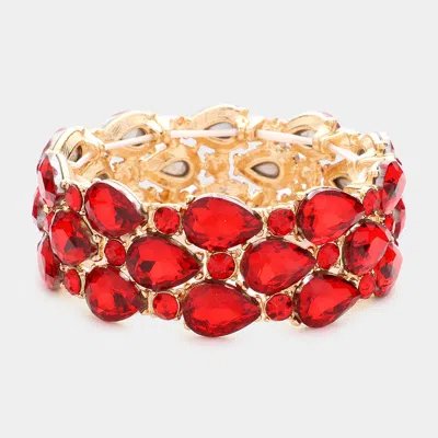 Teardrop Stone Accented Stretch Evening Bracelet In Red