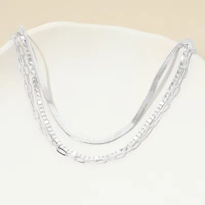 White Gold Dipped Herringbone Paperclip Chain Layered Necklace In Multi