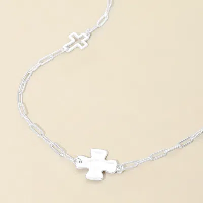 Hammered Metal Cross Charm Station Paperclip Chain Long Necklace In Silver