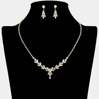 Marquise Cz Stone Cluster Leaf Design Rhinestone Paved Necklace In Multi