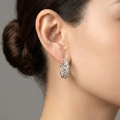 White Gold Dipped Chunky Braided Huggie Hoop Earrings In Multi