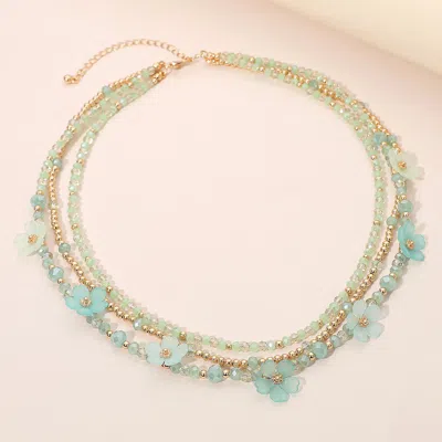 Matte Petal Flower Seed Beaded Layered Necklace In Gold