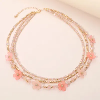 Matte Petal Flower Seed Beaded Layered Necklace In Multi