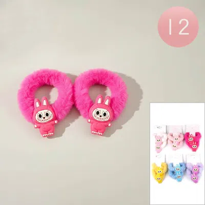 12 Set Of 2 - Fluffy Monster Bunny Plush Doll Hair Scrunhies In Multi
