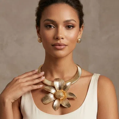 Oversized Pearl Accent Metal Flower Earrings In Gold