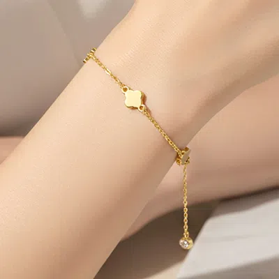 Gold Dipped Quatrefoil Charm Station Link Bracelet