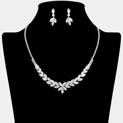 Marquise Stone Accented Rhinestone Necklace 18" + 4" L In Silver