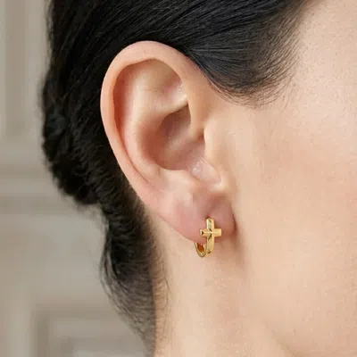 14k Gold Dipped Mini Cross Huggie Hoop Earrings 0.2" X 0.5"