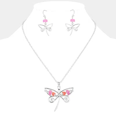 Bean Beads Accented Metal Wire Dragonfly Turtle Pendant Necklace In Metallic