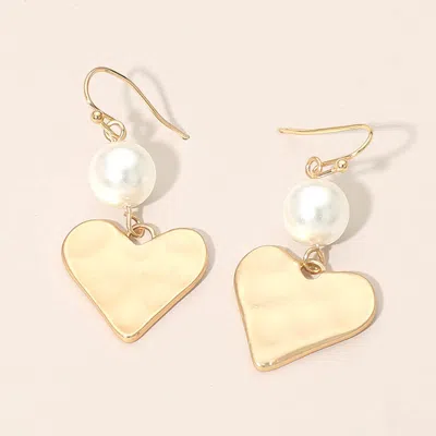 Matte Hammered Metal Heart Pearl Link Drop Earrings In Gold