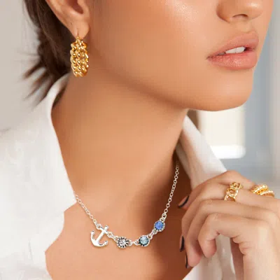 Metal Anchor Triple Round Stone Necklace In Metallic