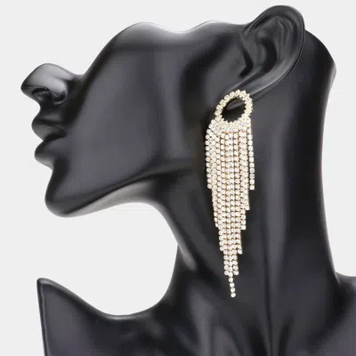 Open Circle Accented Rhinestone Fringe Dangle Evening Earrings - Gold In Metallic