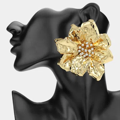 Oversized Stone Pointed Textured Metal Flower Earrings 3" X 3" In Gold