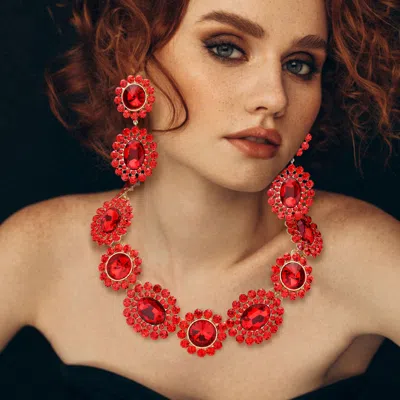 Round Oval Stone Accented Evening Necklace In Red