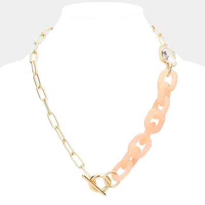 Square Stone Open Oval Resin Link Toggle Necklace In Gold