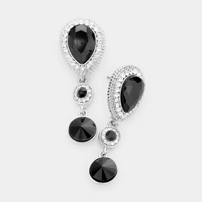 Teardrop Glass Crystal Rhinestone Drop Evening Earrings - Clear, Jet Black, Rhodium In Metallic