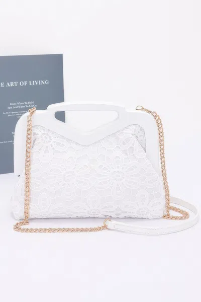 Crochet Wood Frame Clutch In White