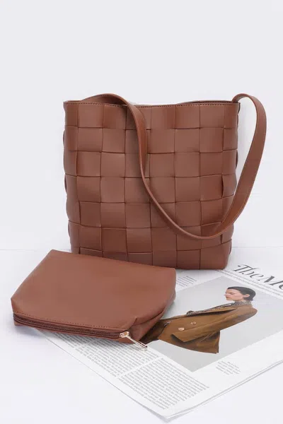 Faux Leather Braided Shoulder Bag W Pouch In Brown