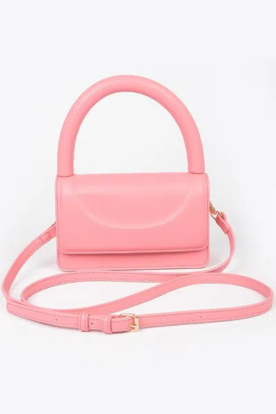 Metallic Faux Leather Top Handle Clutch In Pink