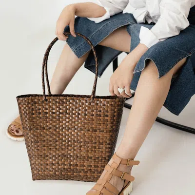 Hand Made Basket Weave Tote Bag / Shoulder Bag In Brown