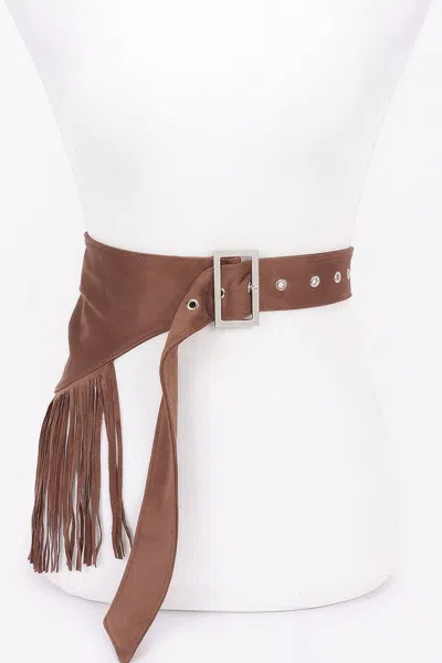 Vegan Leather Small Hobo Bag W/metal Ribbon In Brown