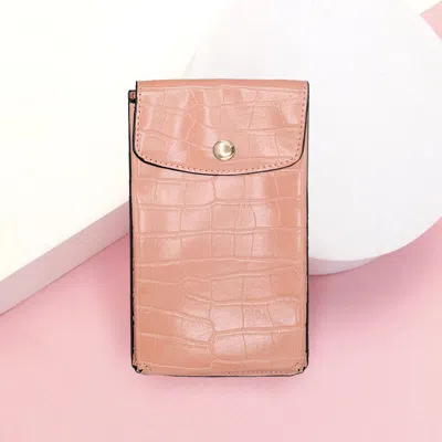 Alligator Pattern Faux Leather Travel Neck Pouch Bag In Pink