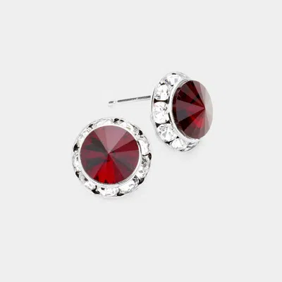 Rivoli Cut Genuine Crystal Round Stud Earrings - Siam In Burgundy