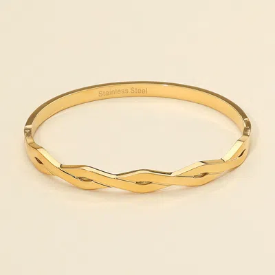 Stainless Steel Twist Cutout Hinged Bangle Bracelet Gold