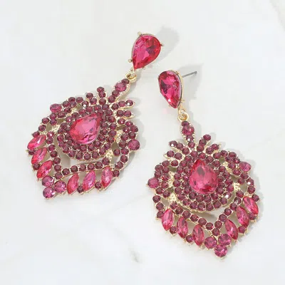 Teardrop Marquise Cluster Embellished Chandelier Drop Evening Earrings In Purple
