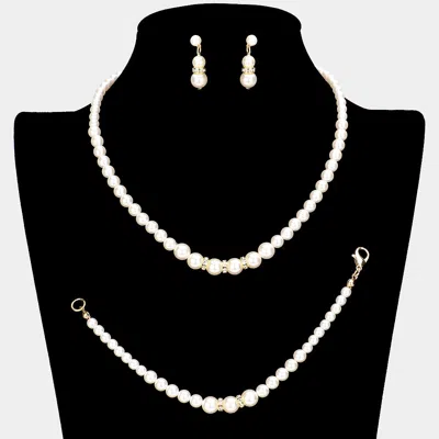 3pcs Crystal Detail Pearl Necklace Jewelry Set In White