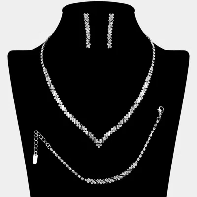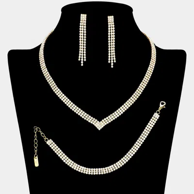 Rhinestone Paved V Shaped Necklace Jewelry Set In Gold