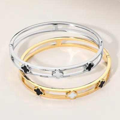 Stainless Steel Triple Quatrefoil Pointed Split Hinged Bangle Bracelet In Multi